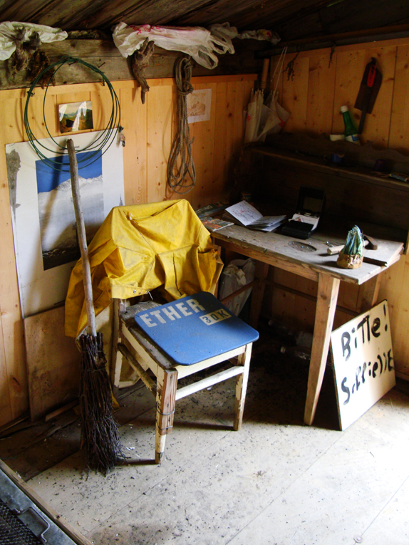 Einsiedlerbibliothek August 2010 u.a. Ether-Sitzkissen Michael Stephan , Siebdruck p.t.t.red