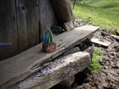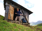 vorhandenen Stein verschließen, da der Almbauer die Hütte als