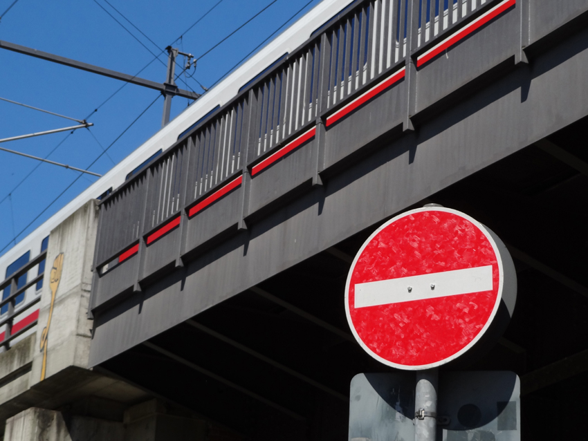 Konzeptmalerei auf Verbotsschildern - Öl auf Original - Die fast Unsichtbare im Stadtraum. Berlin 2013